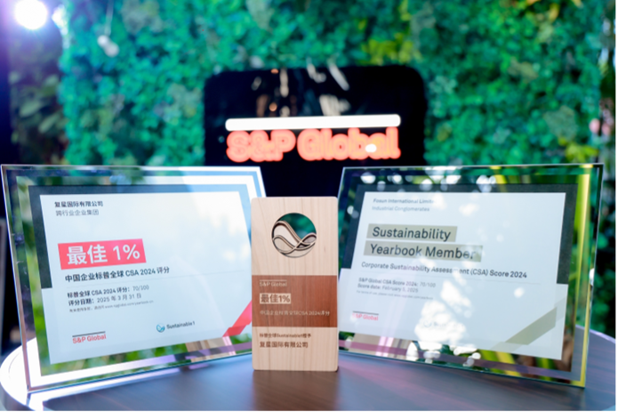 在复星国际不断努力下,国际评级机构对复星ESG管理的认可度持续提升。复星连续五年被纳入富时罗素社会责任指数;恒生ESG评级维持AA-。2025年,富时罗素ESG评分上调至4.2分。在标普全球企业可持续发展评估中,复星位列全球同业前5%,并同时入选《可持续发展年鉴2025》全球版及中国版“最佳1%”名单。